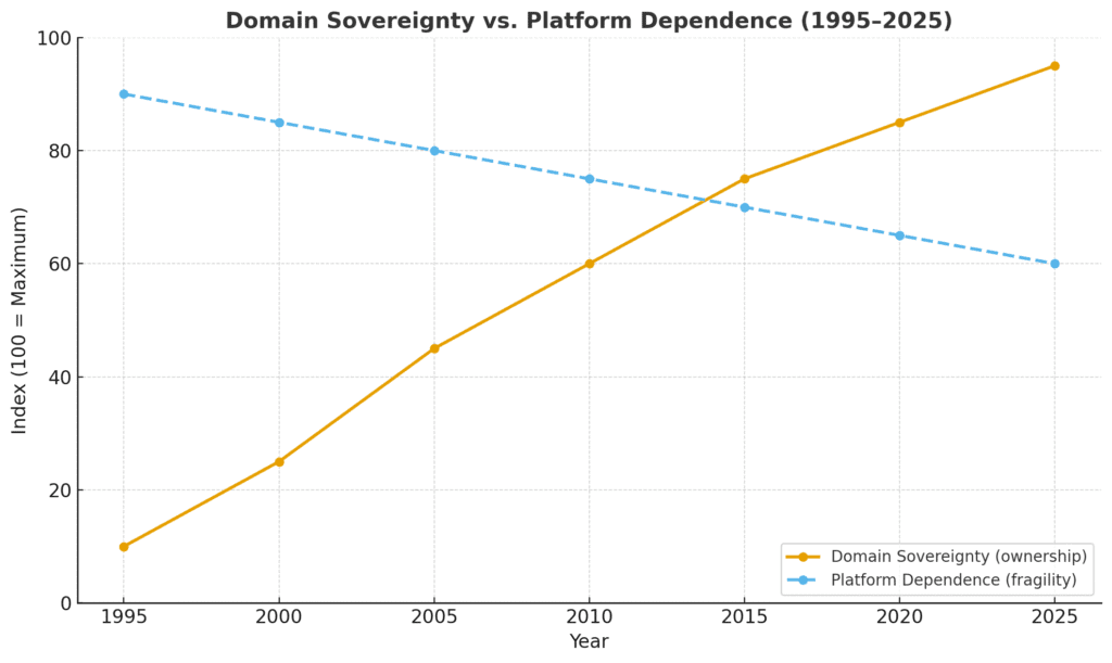 10. Graph: Growth of Domain Sovereignty vs. Platform Dependence (1995–2025)