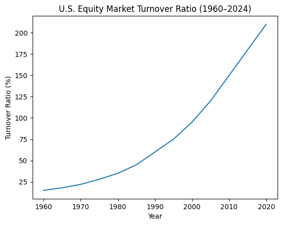 A turnover ratio above 100% means that, in aggregate, the entire market changes hands more than once per year.