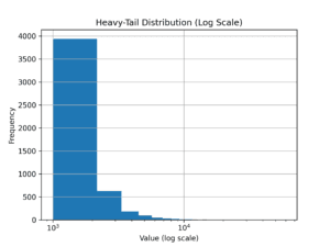 When visualized on a logarithmic scale, the structure becomes immediately visible. Prices cluster heavily in the lower ranges, while the right tail extends dramatically into higher-value territory. The distribution is not symmetric; it is skewed, elongated, and decisively non-linear.
