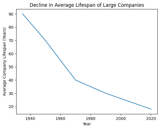 In the mid-20th century, a large company could expect to exist for most of a century. Today, the expectation has collapsed to less than two decades.