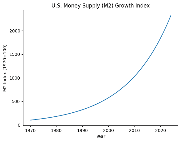 The second chart below shows the U.S. M2 money supply, indexed to 1970.